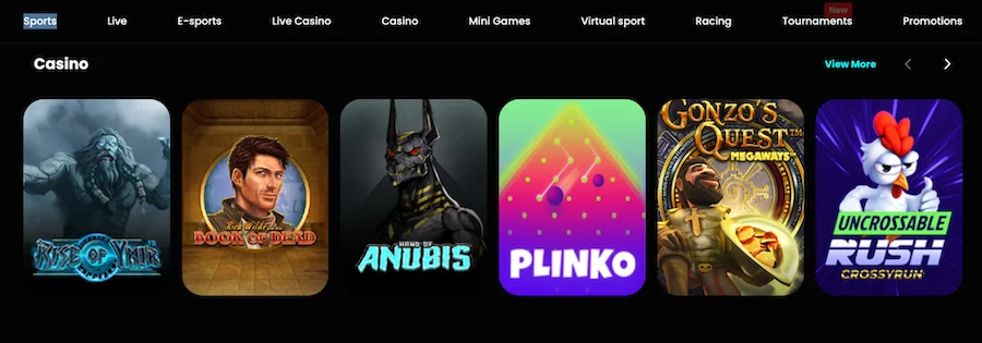 Platforma łączy sobie kasyno online i zakłady sportowe. Oferta bukmacherska obejmuje zakłady przedmeczowe i live. Obstawiać można ponad 30 tradycyjnych sportów. Najwięcej opcji znajdziemy w piłce nożnej, tenisie, koszykówce, baseballu i hokeju na lodzie. Fani e-sportu mogą obstawiać cztery gry: Counter-Strike, Dota 2, Valorant i Call of Duty. Są też zakłady na sporty wirtualne (Sportradar) oraz wyścigi konne i chartów.