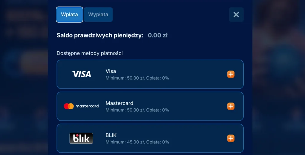 Minimalna wypłata wynosi 40 zł dla kart płatniczych Visa i Mastercard. W przypadku wypłat na portfel krypto kwota ta wynosi 45 zł. Jeśli zaś chodzi o przelew bankowy, minimalna wypłata to 60 zł.