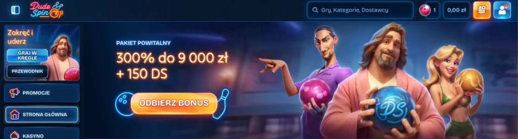 DudeSpin Casino to tematyczne kasyno online inspirowane klimatem kultowego filmu „Big Lebowski” z 1998 roku. Cała identyfikacja wizualna, stylistyka strony, promocje i dedykowana mini gra w kręgle nawiązują do luźnej atmosfery filmu. To klasyczne kasyno internetowe ubrane w mocny, rozpoznawalny motyw popkulturowy.