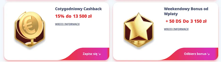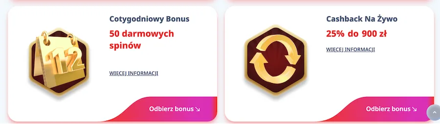 Oferta jest solidnie zrównoważona. Podoba mi się możliwość wyboru między klasycznym pakietem powitalnym a bezpieczniejszym cashbackiem, ale konieczność zgłaszania się po zwrot do supportu uważam za dość archaiczne rozwiązanie.