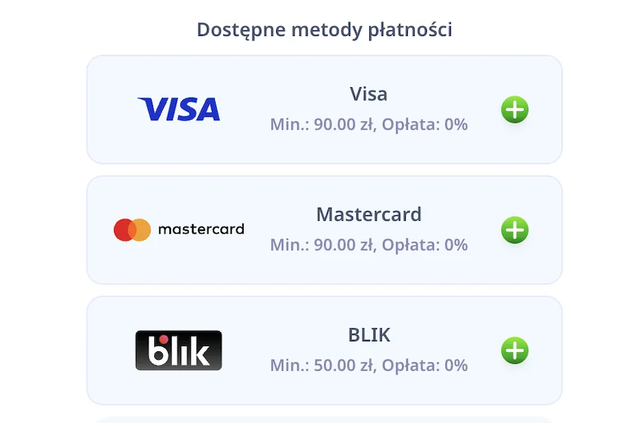 Moim zdaniem najlepszą opcją zarówno do wpłat, jak i wypłat jest Jetonbank. Choć minimalna wpłata jest dość wysoka (90 zł), wypłaty od 50 zł wyglądają świetnie na tle innych opcji fiat. Używałem podczas testów i polecam.