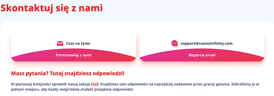 Obsługa klienta w Infinity Kasyno