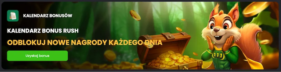 Nie, w ofercie nie znaleźliśmy klasycznego bonusu bez depozytu. Wszystkie główne bonusy, w tym nagrody powitalne i codzienne bonusy z kalendarza, wymagają wpłaty. Bonusy bez depozytu dostępne są jedynie w formie nagrody za awans w programie lojalnościowym.