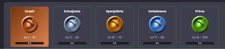 Cashback i nagrody za awans rosną wraz z poziomem – od 50 FS i kilkudziesięciu złotych, po setki tysięcy złotych dla statusu Prime. Punkty nie są wymienialne, a bonusy wymagają obrotu 20x. System jest ciekawy, jednak wyższe nagrody wymagają ogromnego wkładu finansowego, bo 65 zł = 1 punkt, a poziom 100 wymaga aż 12 500 000 punktów.